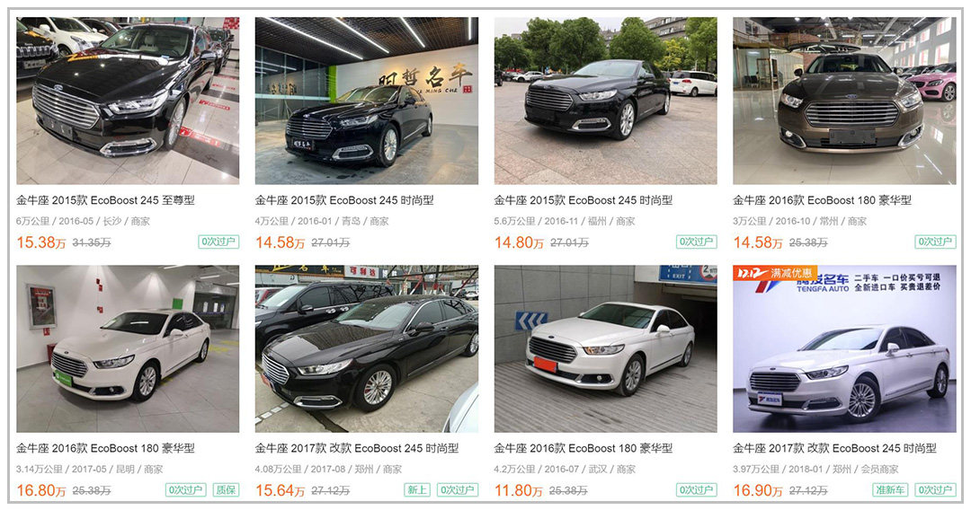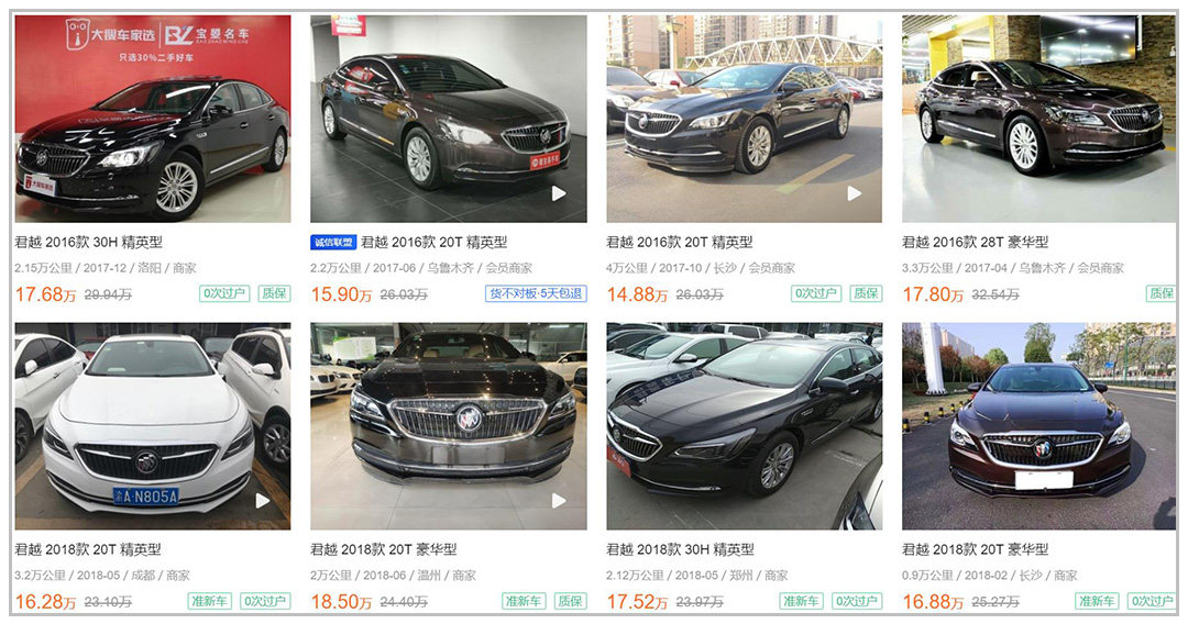 福特是影响力下滑,而别克则是优惠太大,动辄4-5万现金优惠,对品牌的伤害是巨大。仅从别克的二手车表现可见一斑,君越开了三年不到,价格猛降一半的情况也比较常见,只不过别克要比福特吃香,所以君越二手车的价格普遍比金牛座高。