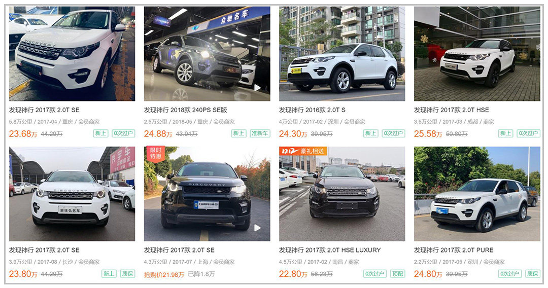 以上买二手不如买新车,优惠下来差不多,比如路虎神行落地才26W