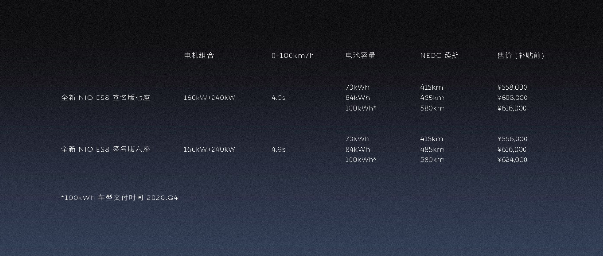 最后,回归到价格及配置方面。新车依然提供了6座和7座版本,除了普通版本车型,还提供了签名版车型。新车补贴前售价区间为46.80万-62.40万元,而签名版的全新ES8补贴前售价为55.80万-62.40万元。全新蔚来ES8将于2019年12月28日接受预定,并于2020年4月份正式交付。即将接近尾声时,李斌还给了广大消费者一个大惊喜,发放了2.5亿元全新ES8的购车红包,预定全新ES8创始版和基准版的消费者,分别可享受15000元和10000元的购车礼包,可以自用也可以转让他人,在使用方面有了更大的灵活性。
