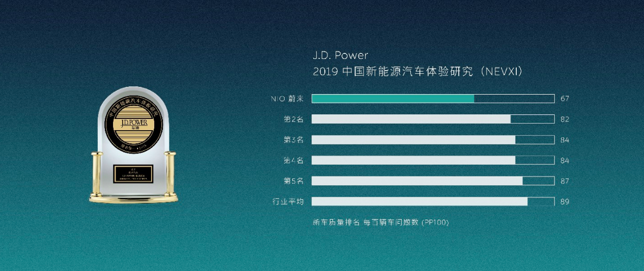 在新车交付量上,从2018年6月开始交付以来,蔚来品牌的累计交付量已突破3万辆大关。另外,蔚来综合实力也得到了国际方面的认可,在J.D.POWER上荣获2019新能源汽车质量排名第一的殊誉;同时,在2019欧洲车身大奖,荣获“技术导向的高端车型”组别第三名的荣誉。