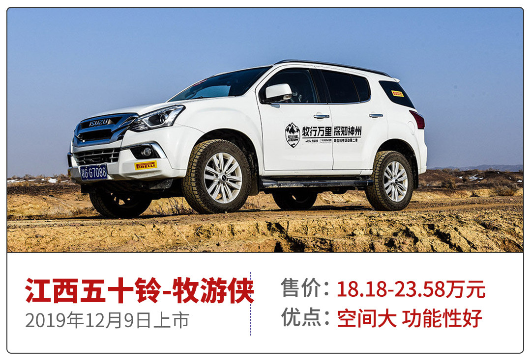 时隔两年,五十铃推出了符合国六排放标准的全新mu-X牧游侠。新车依旧提供5座和7座(2+3+2)可选,4830mm的车长以及2845mm的轴距在功能性和实用性上面都有不俗的表现。比较可惜的是mu-X牧游侠全系搭载的是柴油发动机,再有售价和品牌等因素制约了它的发展,这使得它很难成为一款走量车型。