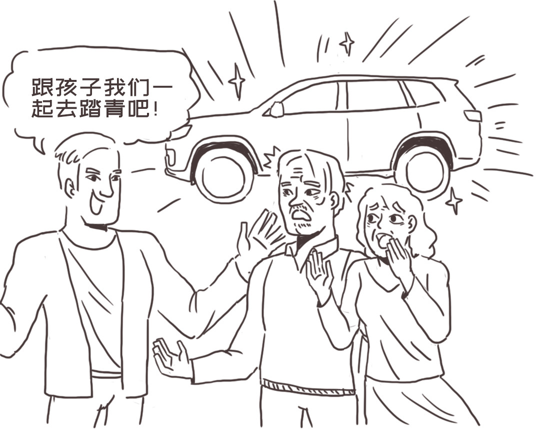 带上父母和孙子去公园踏青