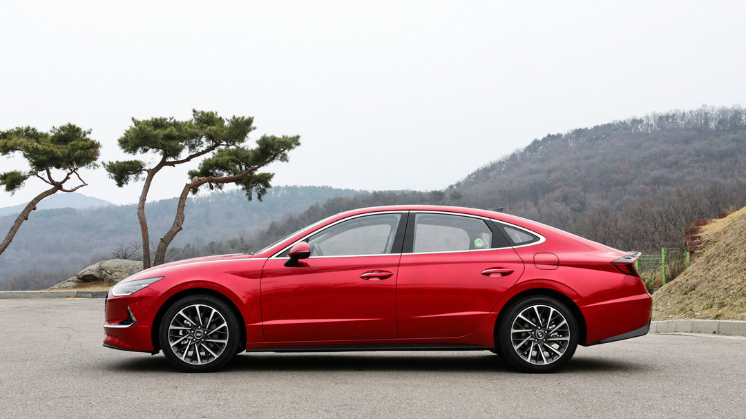 B级车相比起A级车最大的优势在于车身尺寸够大,使得车辆的设计线条能更加舒展,第十代索纳塔就是其中的代表,舒展的侧面线条配合上力量感十足的腰线,从前翼子板延伸到后翼子板并和尾灯融为一体。复杂造型的多辐轮毂给车辆带来不错的视觉效果。