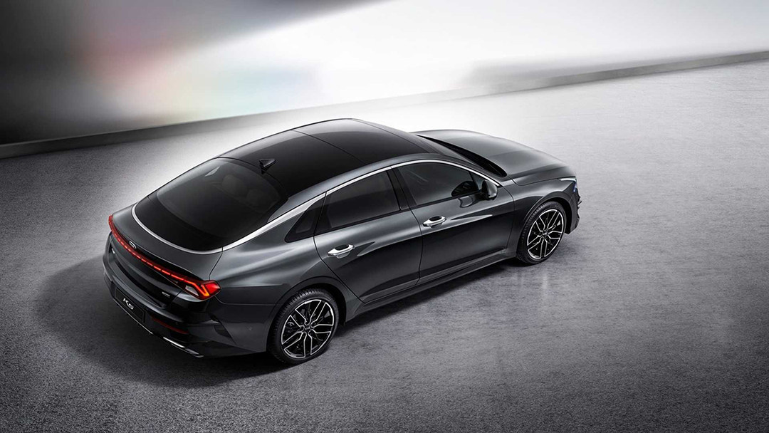 溜背造型是全新K5的亮点之一,复杂的设计线条在光影下会有不错的视觉效果,镀铬的饰条破天荒地从A柱延伸到后窗,并且围绕尾窗,这是全新K5标示性元素之一。
