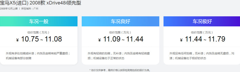 买这类廉价二手豪车的司机,一般都是看中豪车的品牌溢价效应,觉得开在路上倍有面子。那作为二手车卖家,又是怎样看待这些二手豪车的呢?同样是10年前的豪华SUV, 2008款宝马 X5 xDrive48i领先型价格也降到了跟保时捷Cayenne一样,二手裸车价格只有10万元出头。