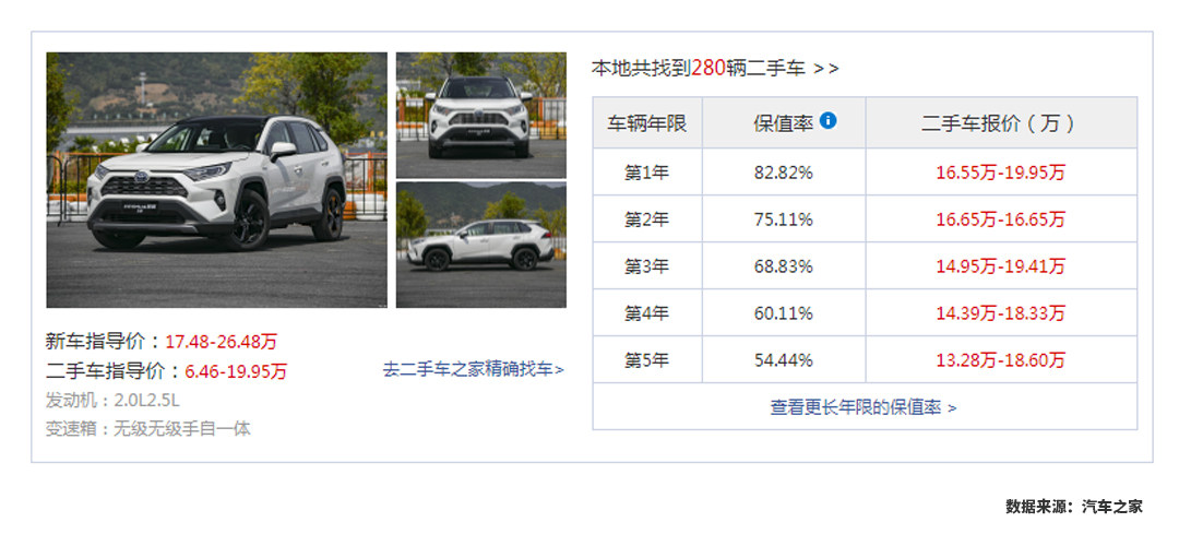 车辆不同车龄的保值率我们都可以通过网站查询到,但也要根据每辆车的车况具体分析。即便是两辆售价相近的车型,但驾驶了3年甚至是5年后投放二手市场的差价却有可能天差地别,因此现在大多数人买车都非常看重车辆的保值率。