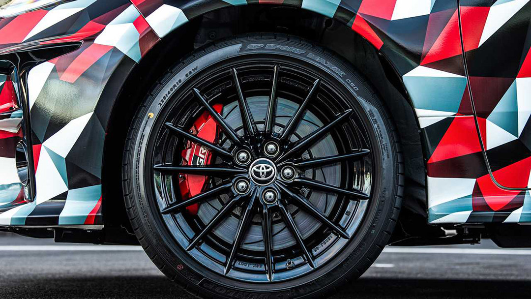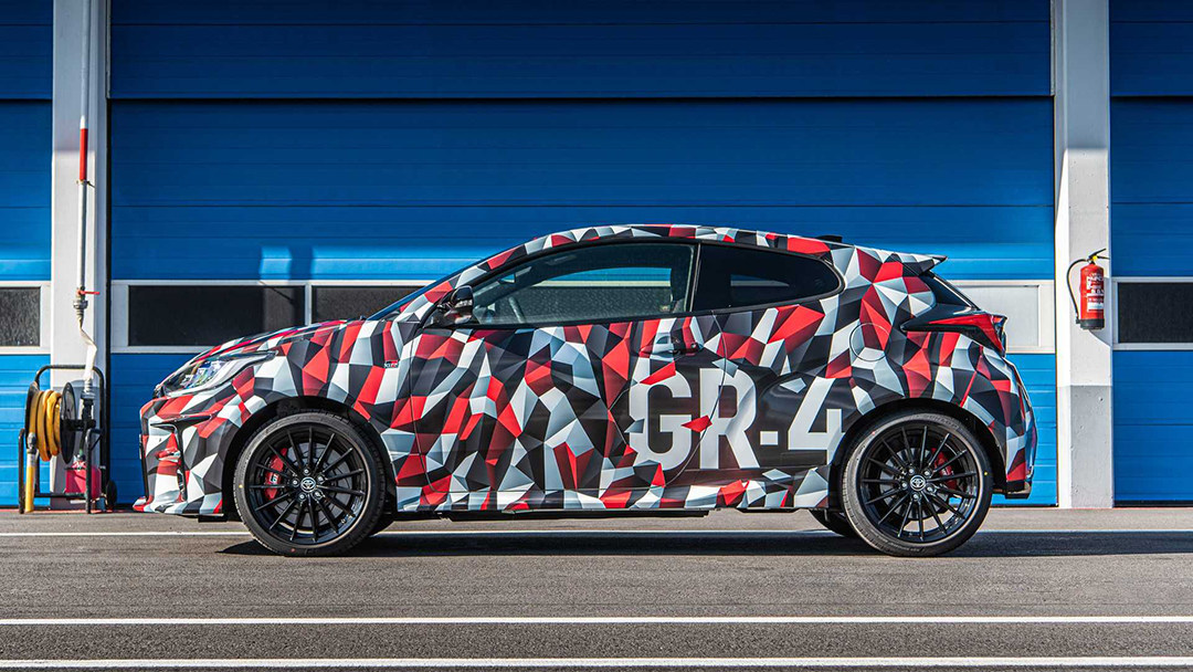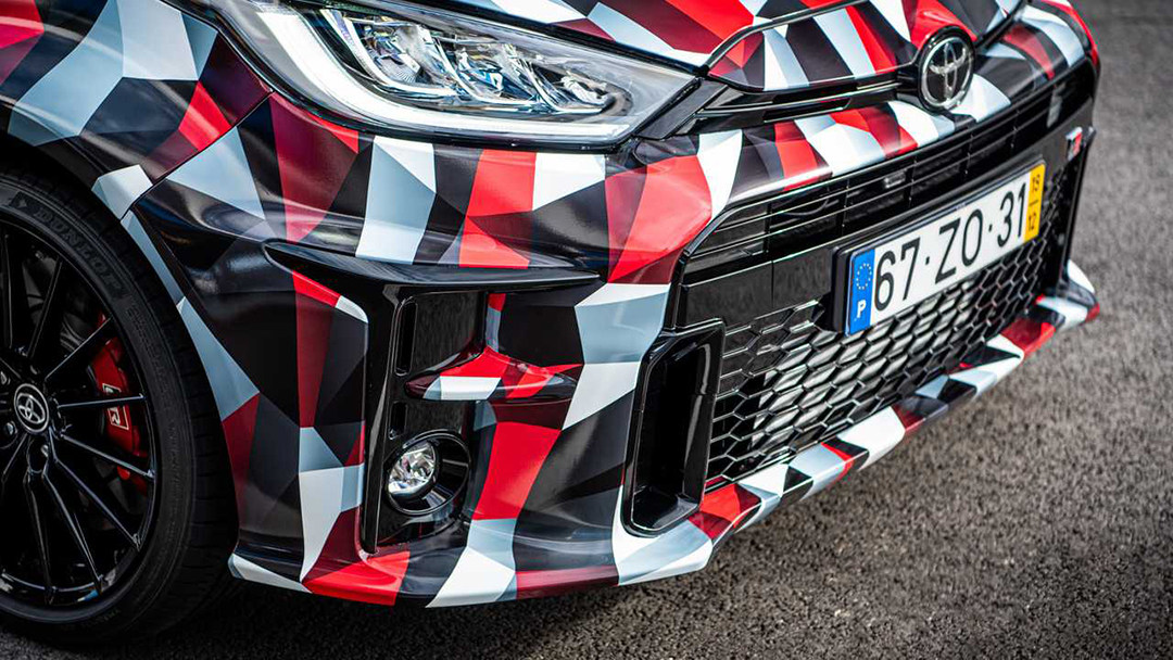 GR Yaris基于三门版Yaris打造,短小精悍的车身虽然覆盖了满满伪装,但大尺寸轮毂、外扩的轮拱、车头两难以忽略的竖向进风口以及几乎填满轮毂的刹车套件,都说明了它并不好惹。