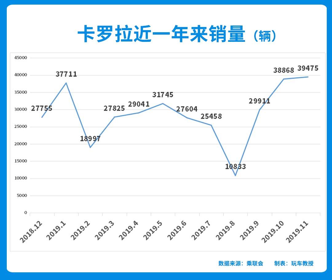 第十二代卡罗拉于2019年8月份上市,在上市第二个月销量就达到2.99万辆, 第三个月达到3.89万辆,而到了第四个月更是达到了3.95万辆,是进入国内的第二好成绩。