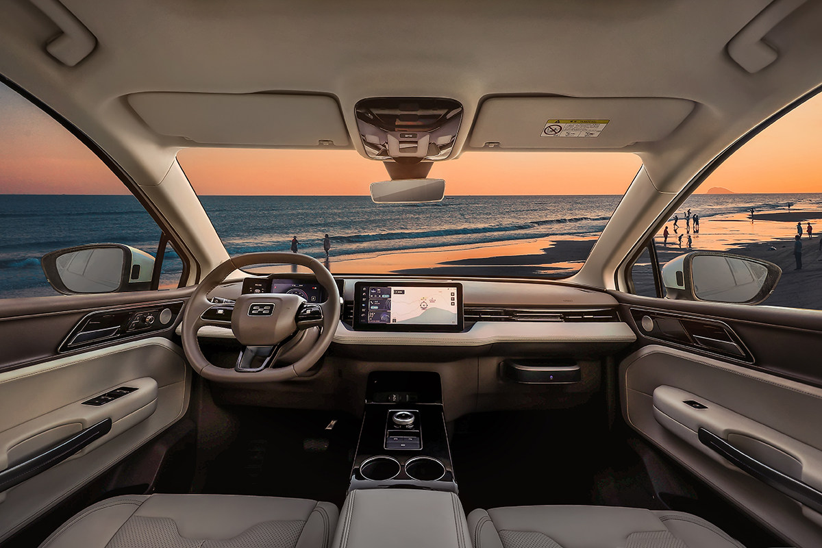 不过,与极简的设计风格相反,U5的配置一点都不简单,车身稳定控制系统、驾驶员疲劳检测、胎压监测、360度环绕影像、影音控制系统等一应俱全,当然最出彩的还数它多达6处支持选装的空间,车主可根据需求选装商务桌板、置物架、空气净化器等个性装置。