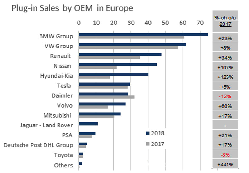 类似这样在车展中一下子发布6款插混车型的厂商估计也是没有谁了,作为目前新能源产品线最全面的豪华品牌,宝马在欧洲新能源市场也是最受欢迎的品牌之一,几乎引领整个欧洲的纯电动车市场。而且在众多新能源车企销售份额排名中,宝马也是名列前茅。