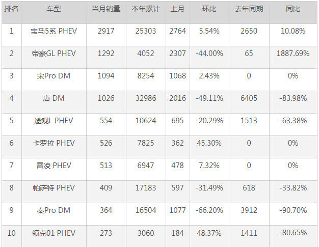 在国内,宝马5系 PHEV车型销量位列高档新能源插电混动车型市场第一。 在去年前11个月,国内新能源车累计销售85.77万辆,其中插混车型累计销售22.32万辆,占新能源乘用车销量的26.02%。在国内插混车型销量不太好的情况下,宝马5系PHEV在去年11月的销量无论是在环比或同比,仍分别增加5.54%和10.08%。