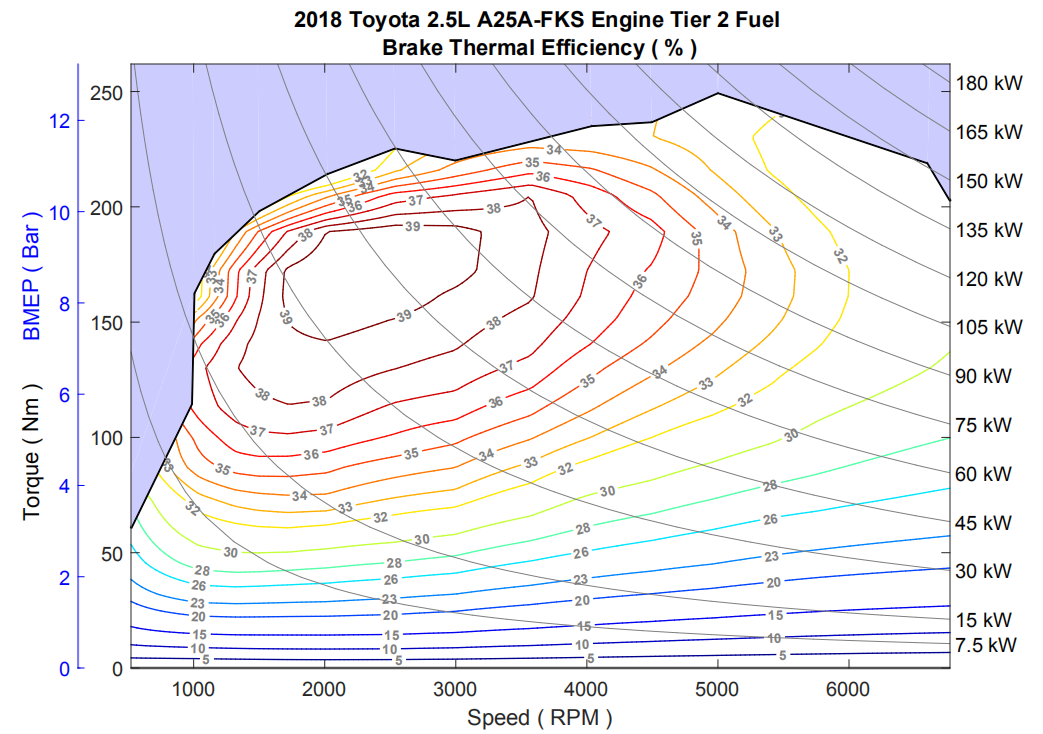 大家都知道,凯美瑞2.5L发动机热效率能达到40%,这意味着油耗特别低,但是这个低好像也没有准确数据,于是教授找来了型号为A25A发动机的贝壳图,为大家好好剖析一下凯美瑞跑高速油耗如何。