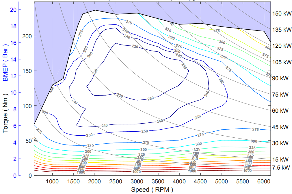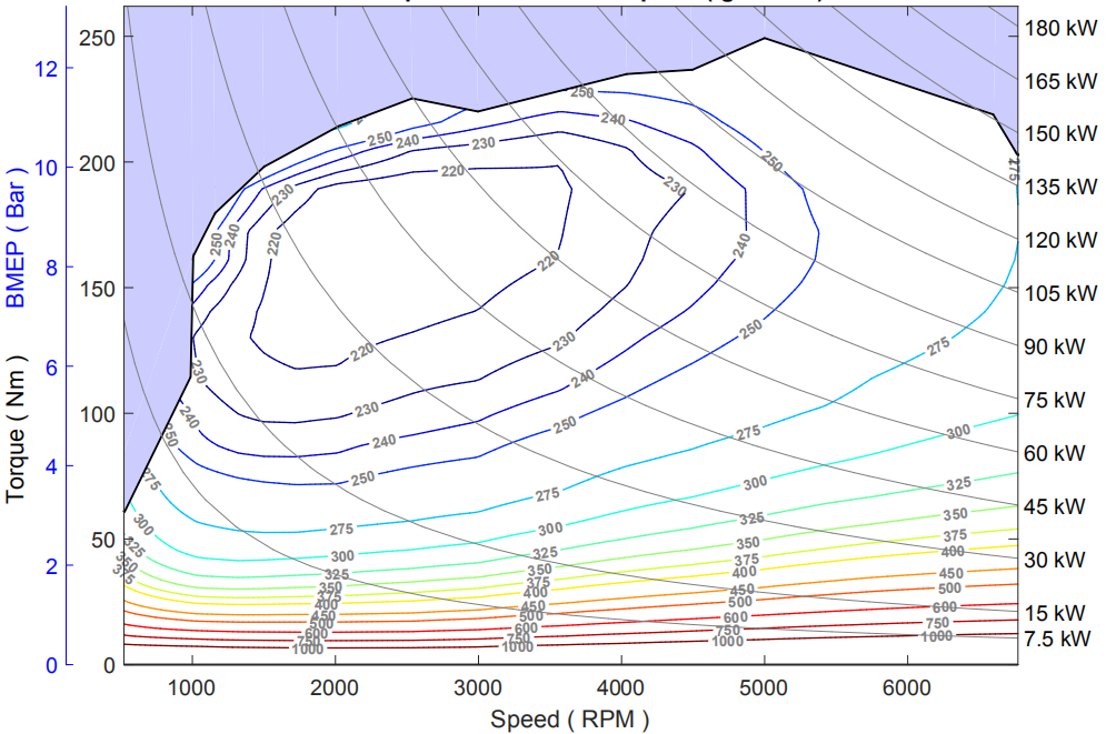 当你看到了一台发动机的贝壳图,意味着你可以精确算出这台车任何速度下所消耗的油量,如果你还知道这台发动机测试时所用的油品,那就可以算出这台发动机的热效率!有了这张神图,变速箱工程师就知道怎样匹配才使发动机最省油,缺了这张神图,就等于瞎子点灯,白费蜡。