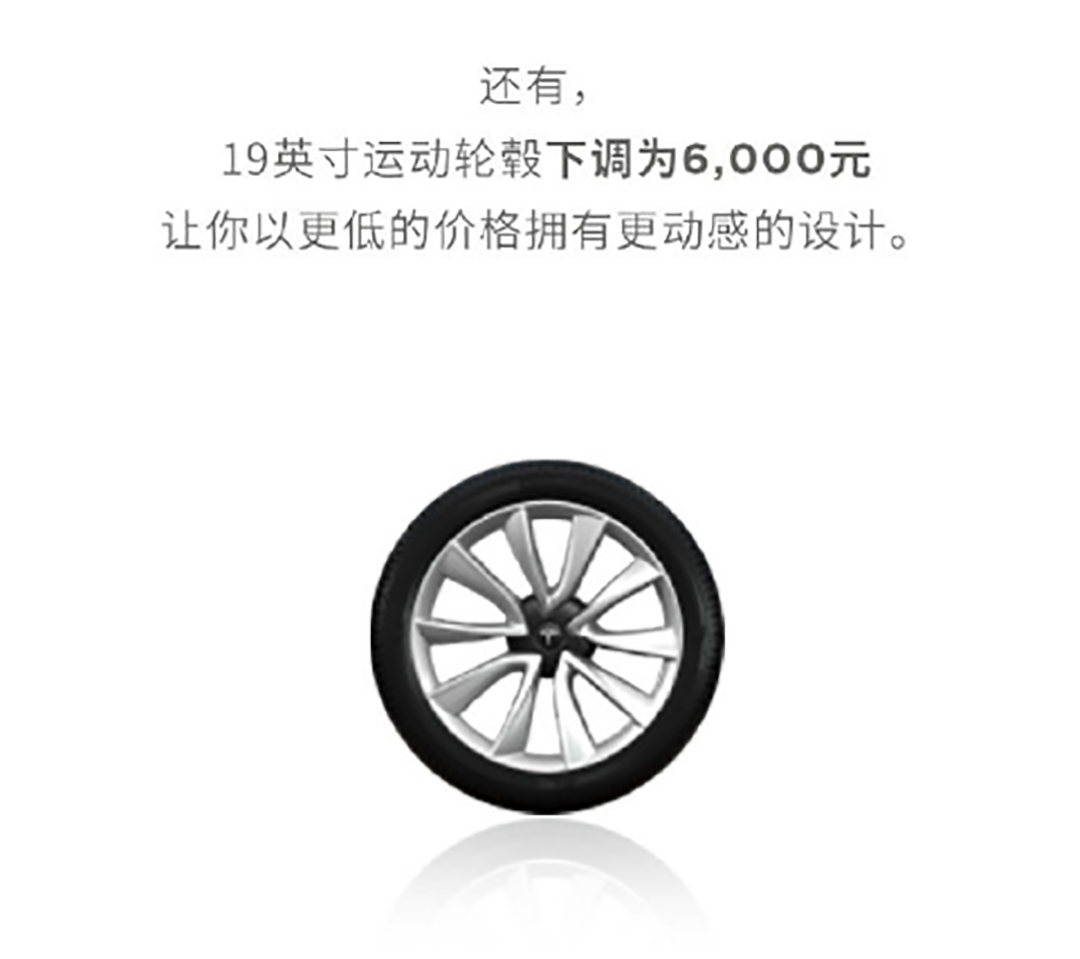 而在轮毂方面,19英寸运动轮毂也从14200元下调至6000元,降幅巨大。