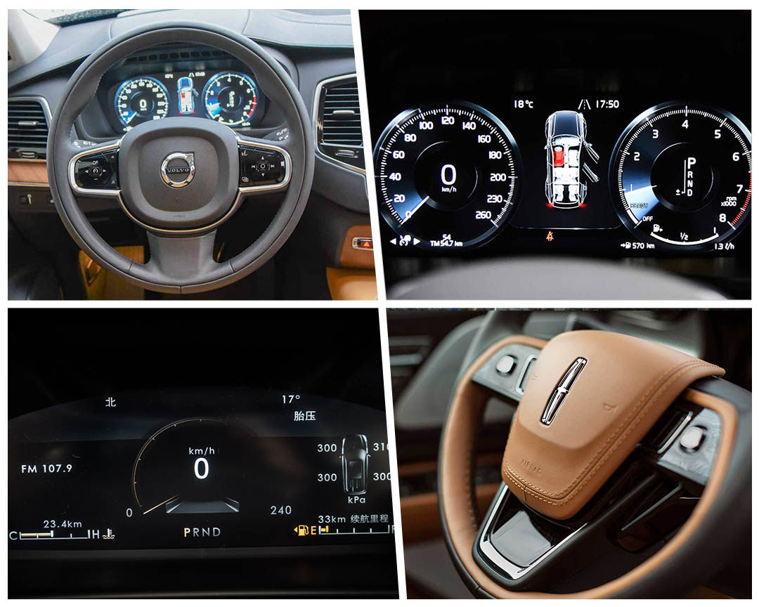 飞行家和XC90都是搭配三幅式方向盘,前者采用了双色设计,其豪华感要比XC90来的更强,但是两者无论是用料还是握感都是极为出色的。