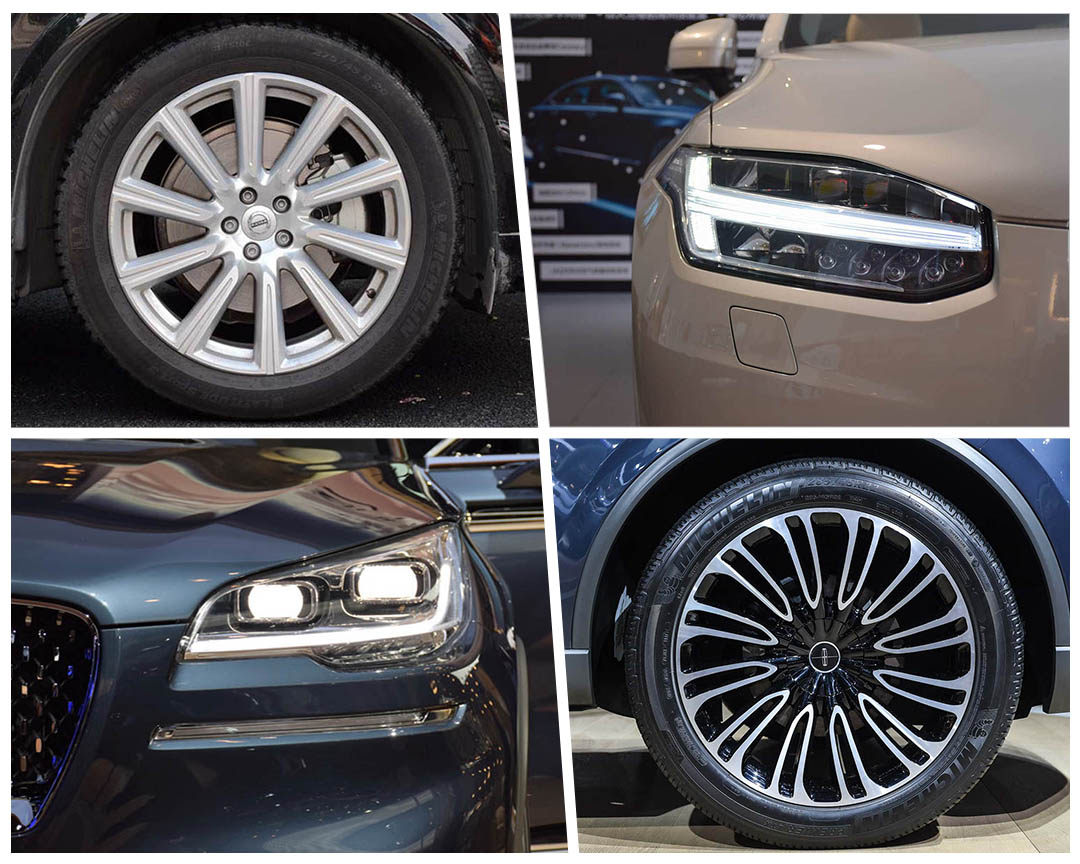 轮毂部分,飞行家搭配了20寸多幅式轮圈,轮胎尺寸为255/55 R20;XC90搭配的同为20寸轮圈,样式风格一如既往都是豪华与动感之分,轮胎尺寸为275/45/R20,两车的扁平比稍有差别。