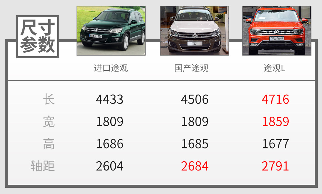 最最深谙尺寸空间重要性的品牌,非大众莫属,可以说大众是国内汽车品牌的加长第一人,这方面不得不提的就是神车大众途观,刚刚国产的途观就经过加长,比进口版本的轴距增加了80mm。