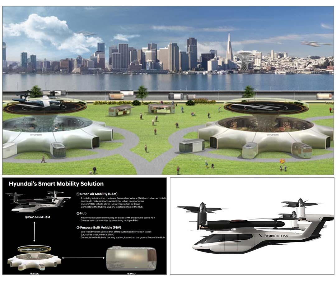 在众多的参展企业中,现代汽车集团显得尤为“出众”,这家汽车企业已经不仅仅把目光局限在地面上,而且向往着蓝天梦想。这一次,现代汽车集团揭晓了未来智慧移动出行创新愿景,展示了城市空中出行(UAM)、个性化定制车型(PBV),集交通运输和社区活动于一体的中央枢纽(Hub)三种移动出行解决方案,其中UAM主要包括由个人飞行器和空中出行服务,PBV则是在地面行驶的环保车辆,而Hub则是连接UAM和PBV的中央枢纽。