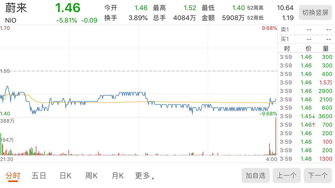 超过市场预期的亏损使得投资者们对蔚来汽车的盈利能力产生了严重质疑。蔚来股价当日大跌20%,随后蔚来股价连跌5个交易日,国庆假期又下跌了7.4%,最低股价一度跌至1.19美元,随时面临退市。