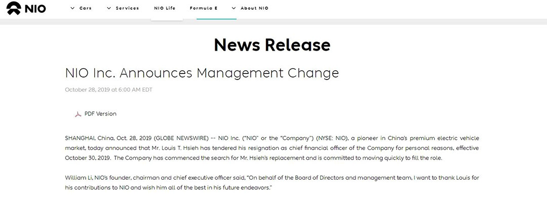 2019年10月16日,蔚来与与浙江湖州市吴兴区50亿元的融资意向“泡汤”;10月28日,蔚来CFO谢东萤因个人原因递交辞呈......直到12月31日,2019年的最后一天,蔚来迎来最值得欢呼一天——NIO Day。