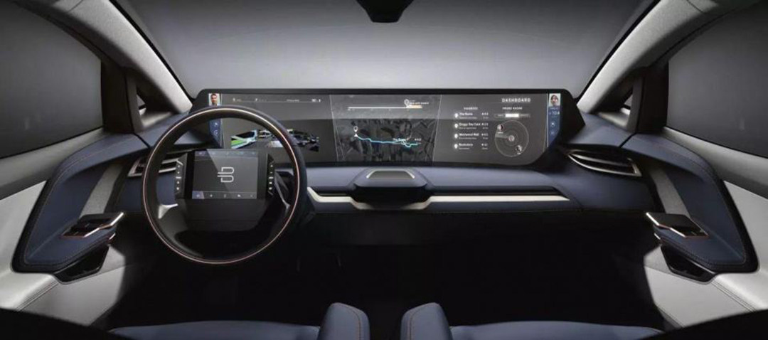 内饰可以说是这款车最大的亮点了,整车被一款48英寸的大屏占据,在方向盘中央也配有一款触摸屏幕,用来操作这款大屏。除此之外,该车内饰没有过多的修饰,整体十分简洁。