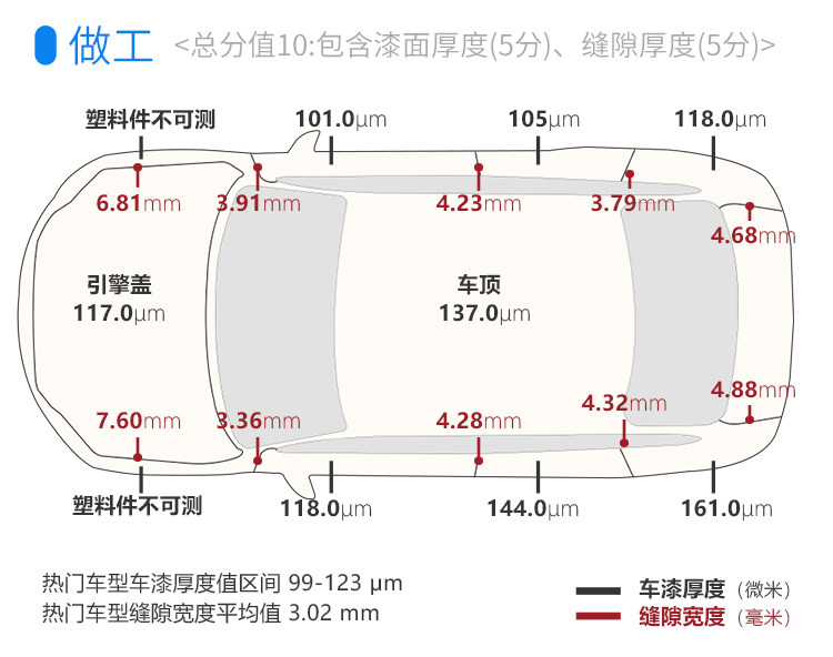三菱劲炫ASX的做工比较一般,车身缝隙偏大,平整度也有提升空间,也不排除是试驾车有过碰撞的原因,因为左后侧漆面厚度来看明显是做过漆面修复。