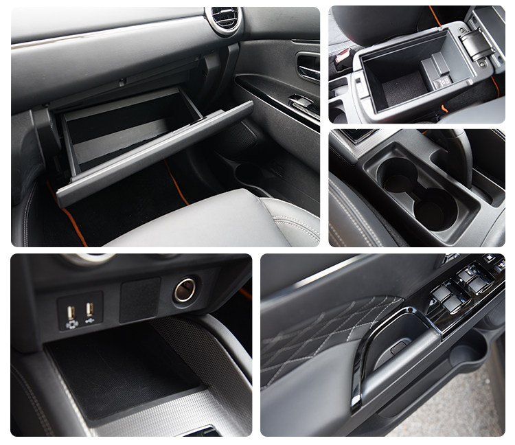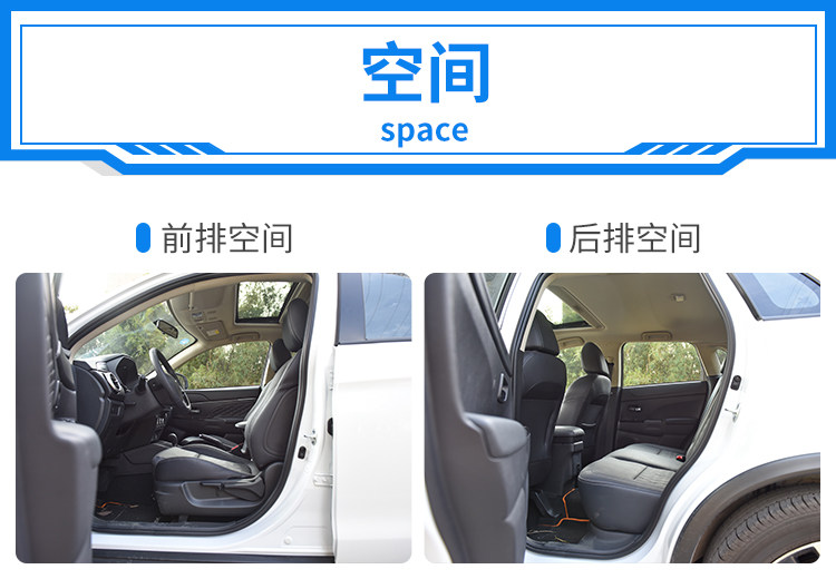 劲炫ASX前排的储物空间做得很好,中控台下方的储物格、扶手箱、杯架、副驾驶手套箱等位置的容量都比较大。不过后排的门板上就缺少了储物空间比较可惜。