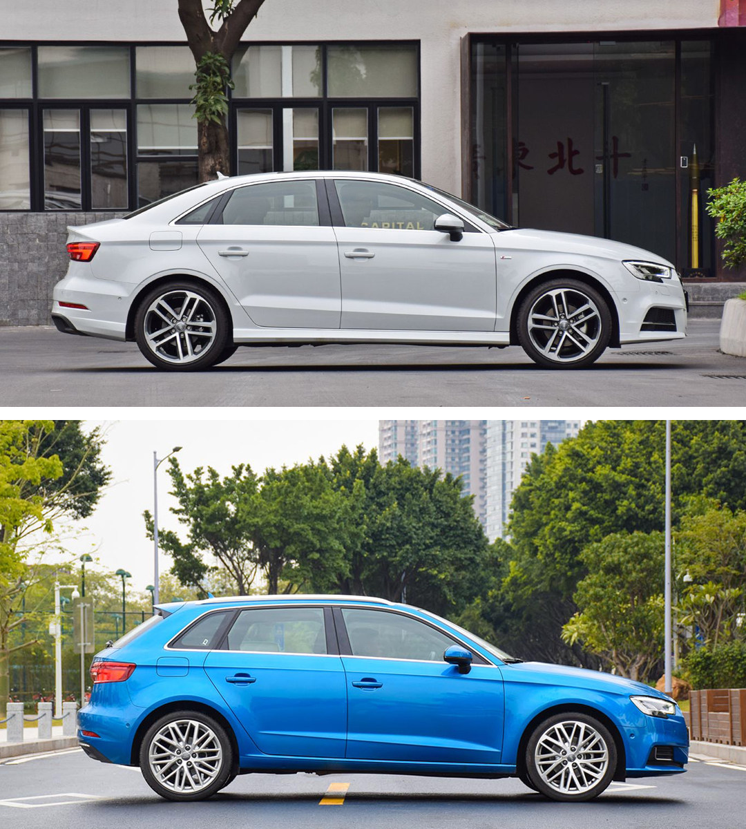 奥迪A3在国内市场提供了两厢和三厢两款车型,因此是比较适合用于解答这个问题的例子。