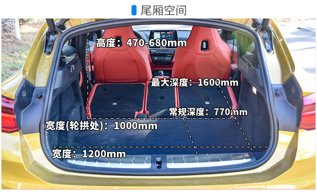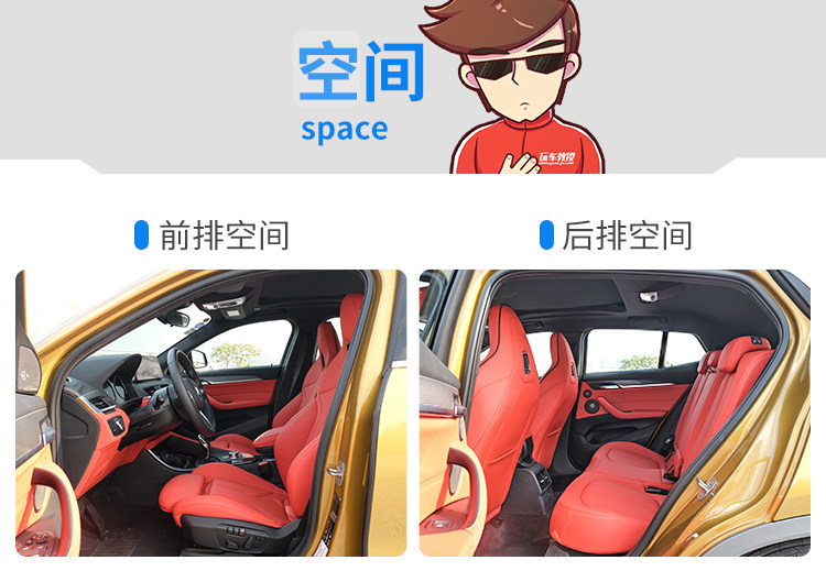 宝马X2国产后并没经过加长,虽然罗列的竞品都没有加长过,但尺寸上更同级别车型相比仍然有点吃亏。