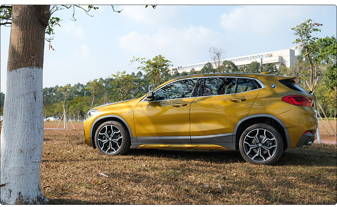 宝马X2最大的特点是它的跨界SUV造型,跟GLA、UX相似的造型,但X2的风格更有力量感,比传统SUV更扁平的车身侧面,又高有修长的窗线,没有一丝臃肿,侧面相当有动感。