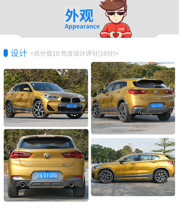 作为一辆城市SUV,视觉上X2好像有点低趴,实际上它的离地间隙并不低,只是接近角比较小,限制了其通过性。