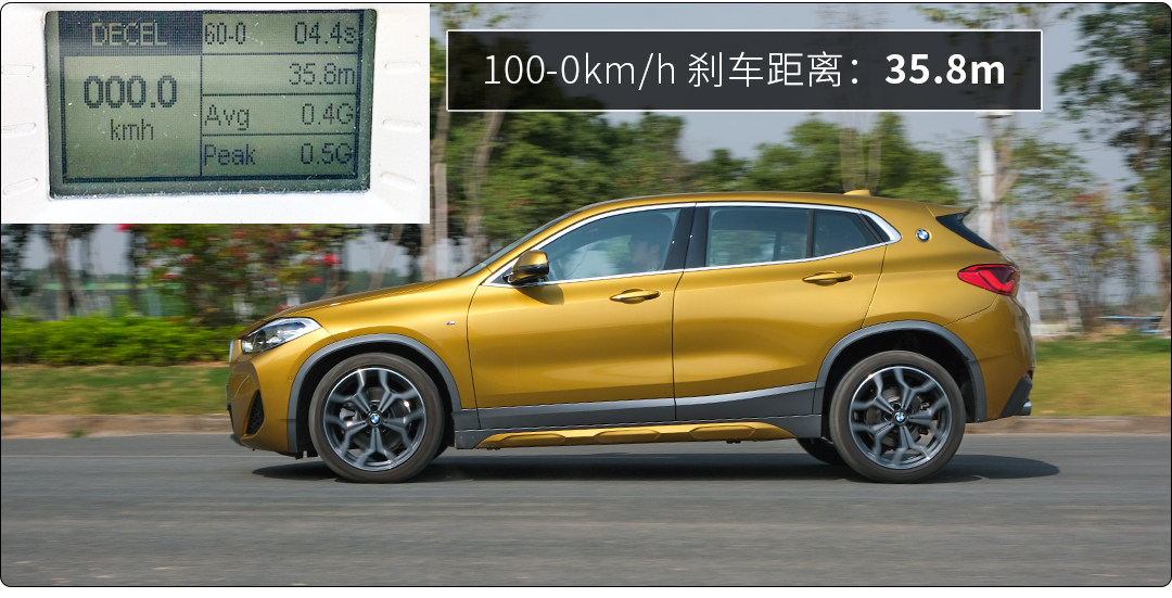 测试气候条件是27°的晴天(没错1月的广州就是这么热,祖国真大),第一次百公里加速8.8秒,第二次8.5秒,随后几次都稳定在8.2秒,跟官方成绩(7.4秒)有点差距,因为有适时四驱系统,轮胎抓地性能也很出色,起步基本没有打滑,抬头非常轻微,基本不会影响操控;制动成绩非常理想,刹车姿态很平稳易控,点头不严重。
