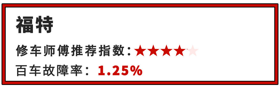 在ACE Limited的调研中,福特发动机的百车故障率为1.25%,排在被调研的所有车企第八名,表现不错。