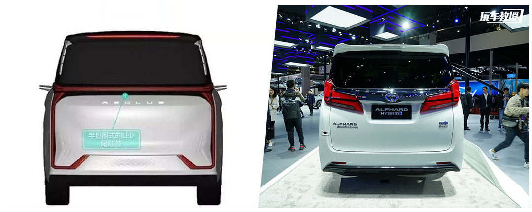 尾部的设计就极具特色,和埃尔法不沾边,半包围式LED灯带比较有新意,相信是一个抢眼的设计。