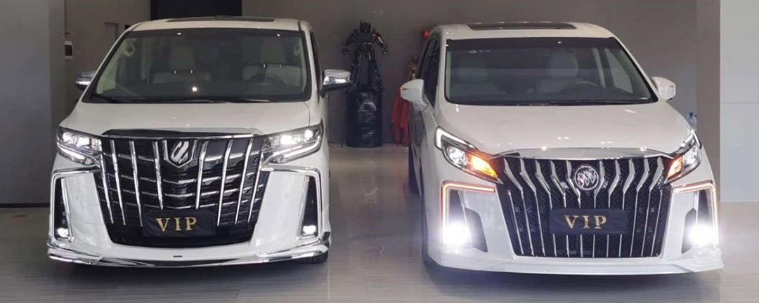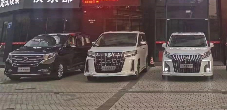 埃尔法的成功确实成为了很多新车的榜样,但其实百分百的模仿也是说不过去,毕竟MPV车型在框架造型上都是比较固定的,除此之外,教授还看到了另一个改造案例,是由改装厂针对车型开发包围,“意图”更加明确:
