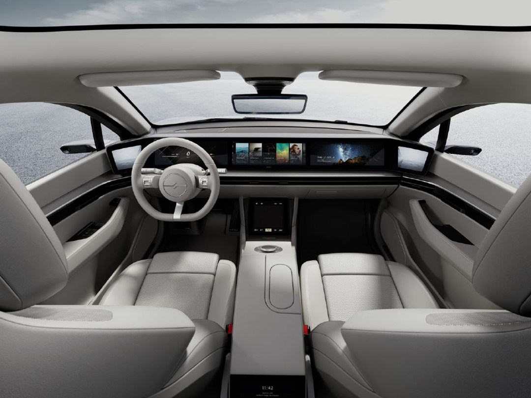 根据索尼公开的信息显示,Vision-S的三围尺寸为4895*1450*1900mm,轴距为3000mm,整备质量为2.35kg。该车还搭载了两台电机,每台电机最大功率为200kW,零百加速时间仅为4.8s,车辆极速为240km/h。