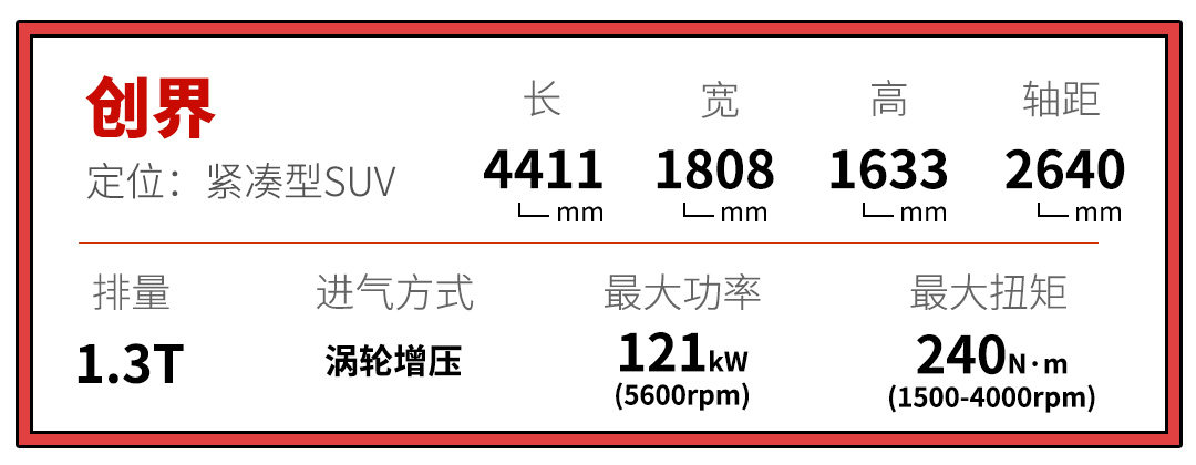 然而,创界搭载了同级独有的1.3T+9AT组合,最大功率121kW,转速在1500-4000rpm区间可爆发峰值扭矩240N·m,0-100km/h加速时间为9.1秒。这样的一辆三缸紧凑型SUV,其最大功率和峰值扭矩与1.5T排量的四缸探界者基本持平,然而在燃油经济上,官方给出的百公里油耗数据却只有探界者的86%。