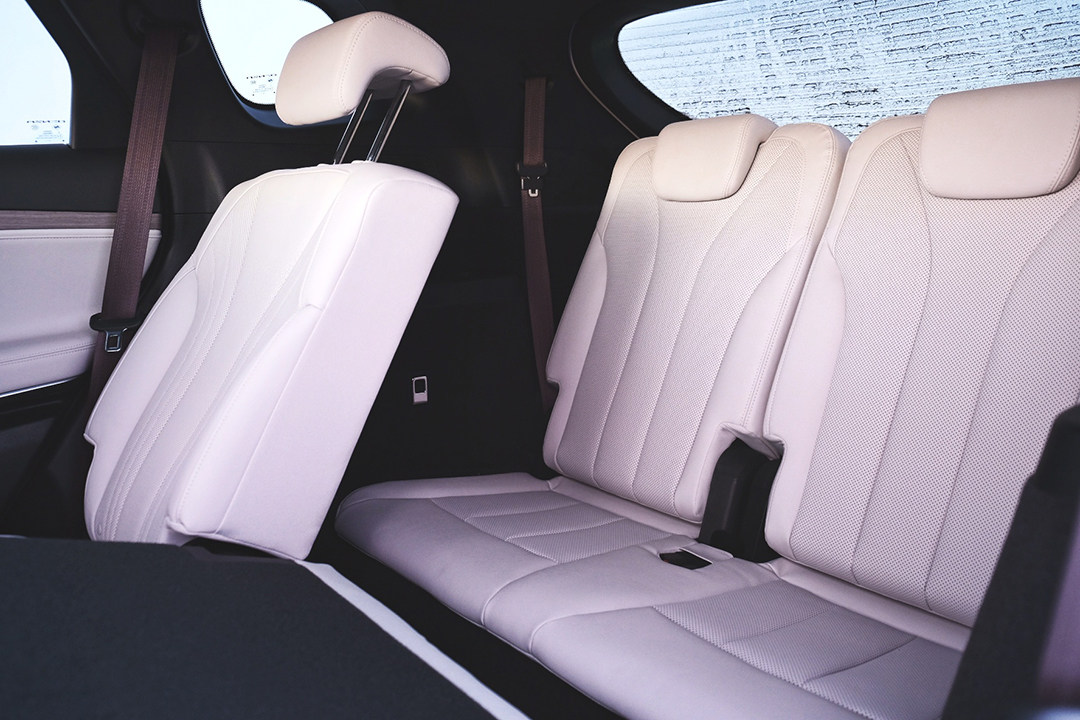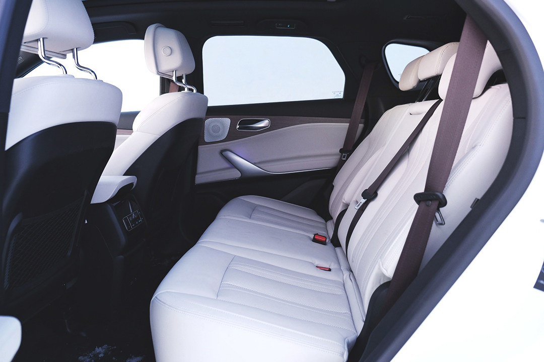 作为一款中型SUV,乘坐感受也是十分重要的;对于轴距2820mm、全系标配7座的腾势X来说,前两排座椅的空间体验是不需要担心的,偏软的座椅填充物和加上触感和防滑性都有不错表现的皮革,前两排乘客可以获得不错的乘坐体验;至于第三排,则如其他7座中型SUV一样,聊胜于无,仅限应急使用。