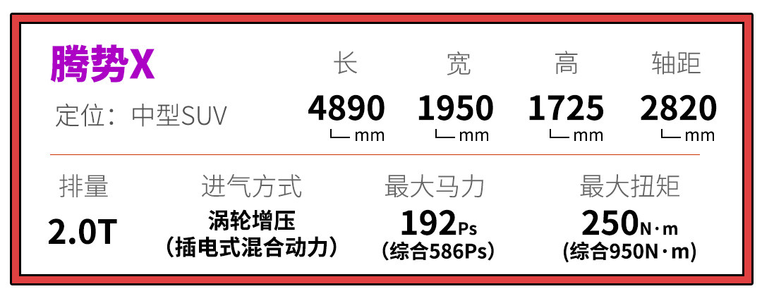 静态体验部分就说这么多,动态体验环节才是重点;毕竟这是教授首次开上这款新车。在动力系统部分,腾势X提供三种动力规格,分别为纯电两驱、纯电四驱以及插电式混动。此次腾势提供的试驾车型为插电式混合动力版本,其搭载可输出最高192匹马力的2.0T涡轮增压L4发动机,以及前后轴双电机,整套系统可提供最高586匹马力。怎么?这动力数据感觉在哪里看到过?没错,腾势X作为一款由戴姆勒与比亚迪合作研发的中型SUV,其采用了现款比亚迪唐DM的同款平台与动力系统。