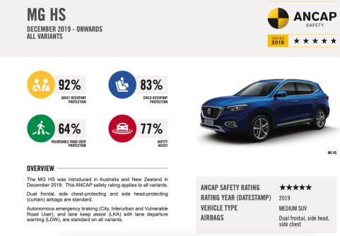 澳洲ANCAP的测试标准与Euro NCAP基本相同,有些项目甚至更严苛,比如要求车辆在澳洲实际路面验证限速辅助等部分ADAS(高级主动驾驶辅助系统)功能,评估车辆能否识别澳洲路牌信息等。名爵HS以成人保护92%、儿童保护83%、行人保护64%、安全辅助系统77%的得分拿下ANCAP五星,车辆安全“真金不怕火炼”。