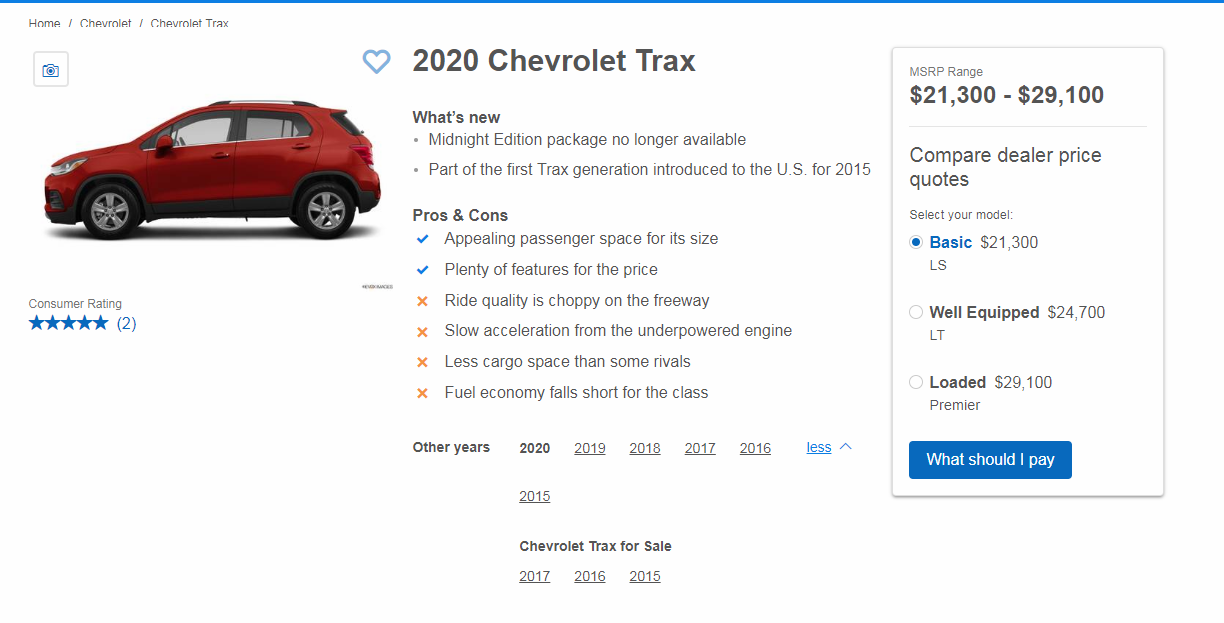 而美国版本的创酷依然是老款的模样,售价为21,300-$ 29,100(折合人民币约为 14.91万-20.37万元),自2015年新车上市以来就没有太大的变化了。美版创酷提供了LS、LT以及Premier三种配置车型,其中,LT版本则是增加了更多比较实用的功能,并且可以进行其他套件选装;而Premier版本的话,除了内饰升级之外,还有着主动安全功能的升级优化。