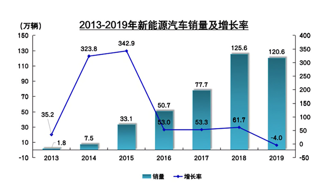 据核算,2019年,新能源车全年销量120.6万辆,同比下降4%。这也是自2013年推行新能源补贴政策以来,新能源车年销量首次下滑。不过,新能源整车市场销量下滑背后,上游动力电池装车量却始终处于逆势增长状态。