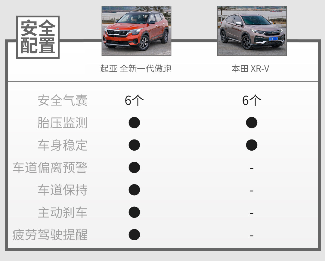 而在主动安全配置方面,全新一代傲跑以更低的价格给到你更全面的保护,配备车道偏离预警、车道保持、主动刹车系统,配合定速巡航系统,巡航状态下可以释放双脚;而XR-V只有在顶配车型才能给到相同的配置,价格要高达17.59万,傲跑的厚道值得点赞。