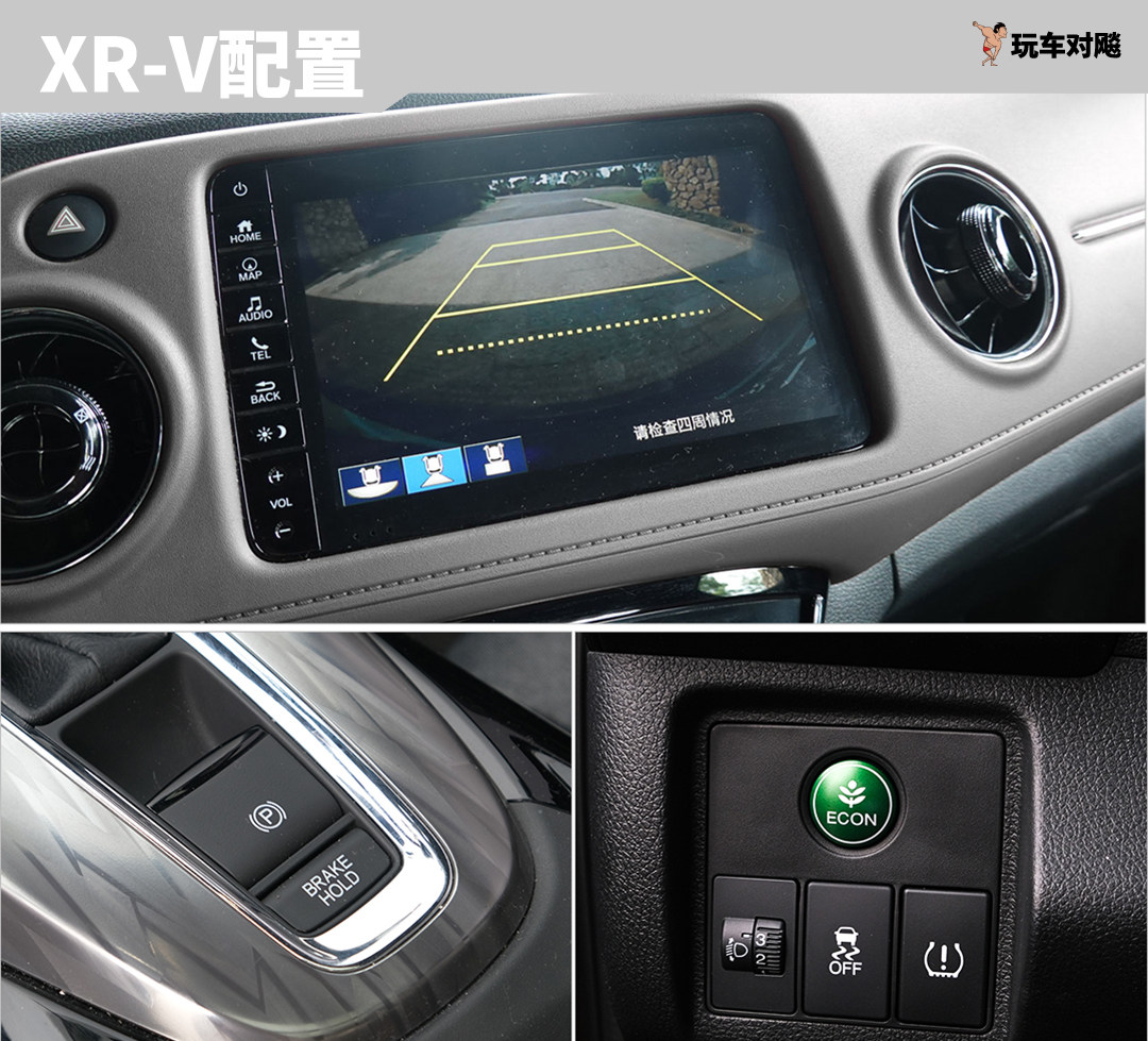虽然XR-V的功能比较单一,但它的标配项也不低,倒车影像、中控屏、AUTOHOLD等都是全系标配,总体来说中低配就已经够用,性价比也不错,当然如果想要更多舒适配置可以选装中高配,全景天窗、自适应巡航、主动刹车灯都会在顶配车型给到。