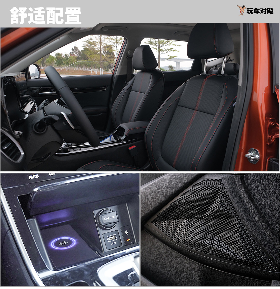 舒适配置方面,全新一代傲跑选装了智能包和设计包,配备真皮方向盘+仿皮座椅、无钥匙系统、前排有无线充电、支持百度CarLife手机连接,6个喇叭的音响,音响罩凹凸有致十分紧致,还有8色的氛围灯,十分有档次,后排有独立出风口,总体来说傲跑的配置赶得上二十几万的中高级车型了。