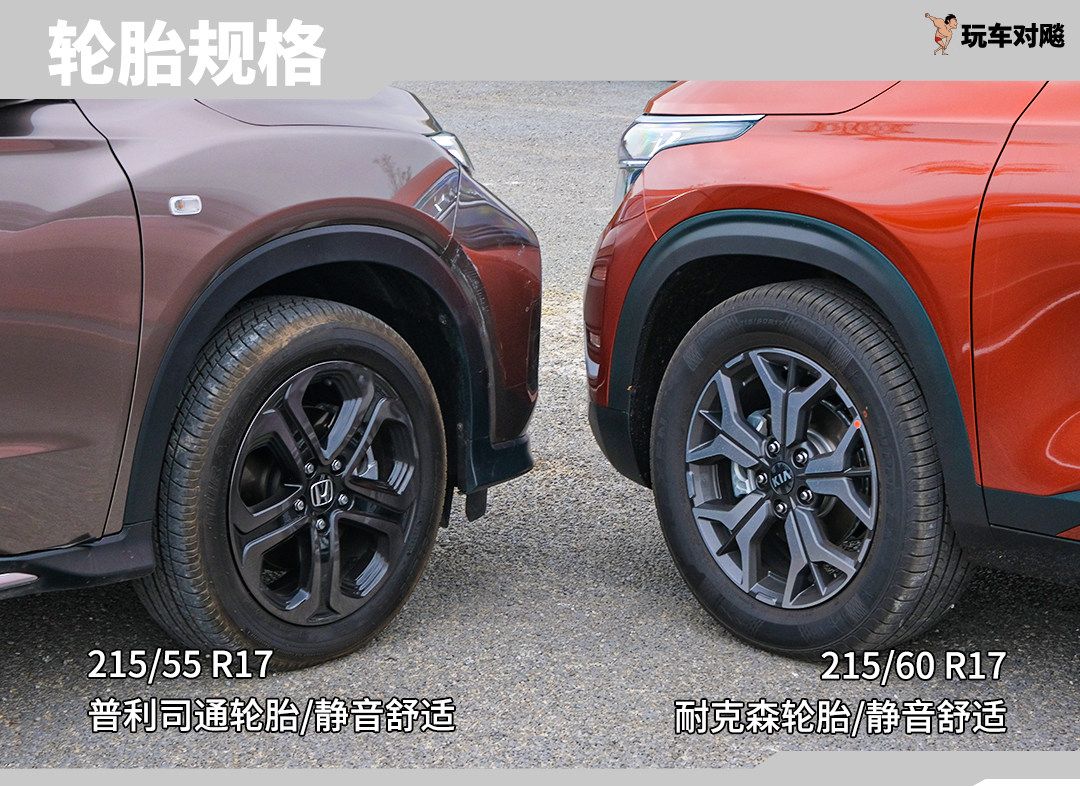 全新一代傲跑配备215/60 R17耐克森轮胎,注重静音舒适和耐用性,双色轮毂造型更精致;XR-V配备215/55 R17普利司通轮胎,同样是静音舒适胎,采用熏黑五辐式造型。
