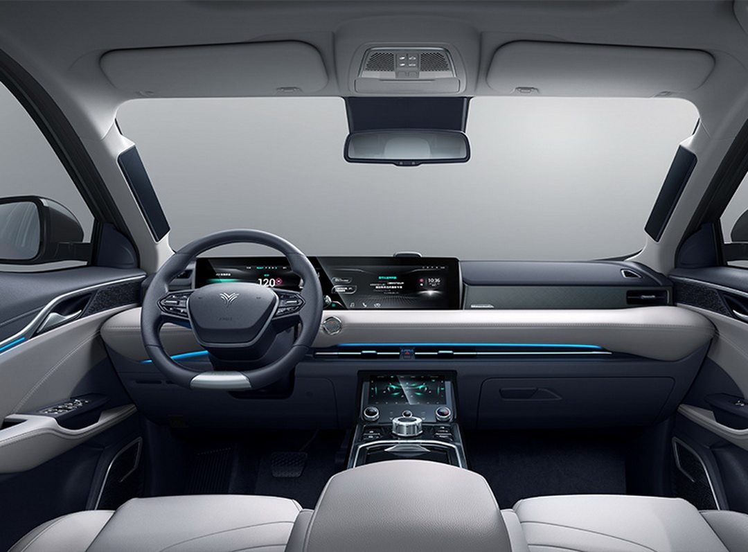 车内四屏联动,由两套系统两套芯片驱动,其中仪表盘和档杆上方的屏幕由德州仪器J6芯片和Linux系统驱动,中控屏和副驾驶屏幕则是由高通骁龙820A芯片和安卓系统驱动。之所以分两套芯片和系统驱动,主要还是防止系统死机,提高安全性。