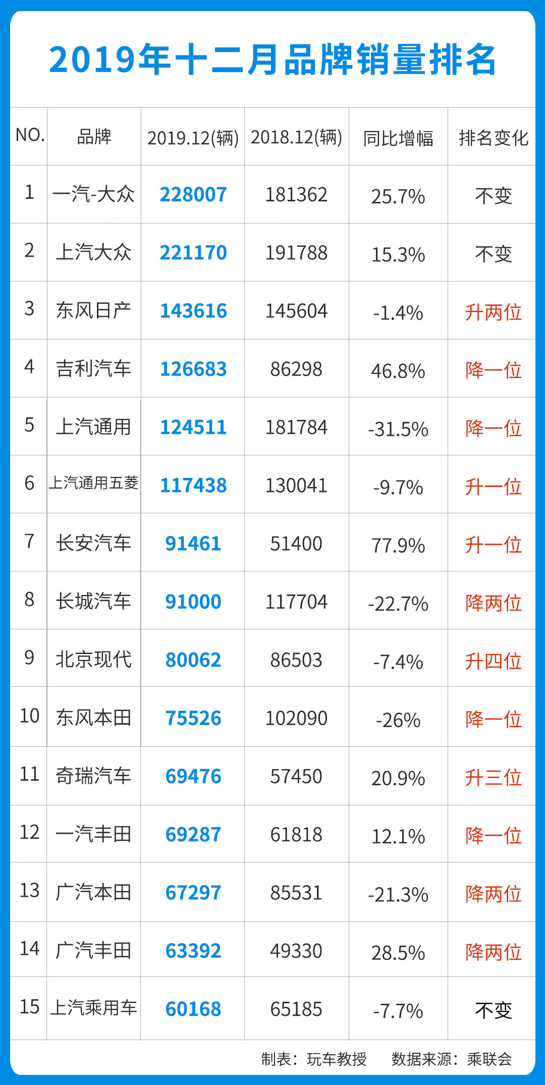 从乘联会公布2019年12月份数据来看,车市依然是德系、日系唱主角,自主品牌取得长足的进步,韩系车仅有北京现代位列第9。