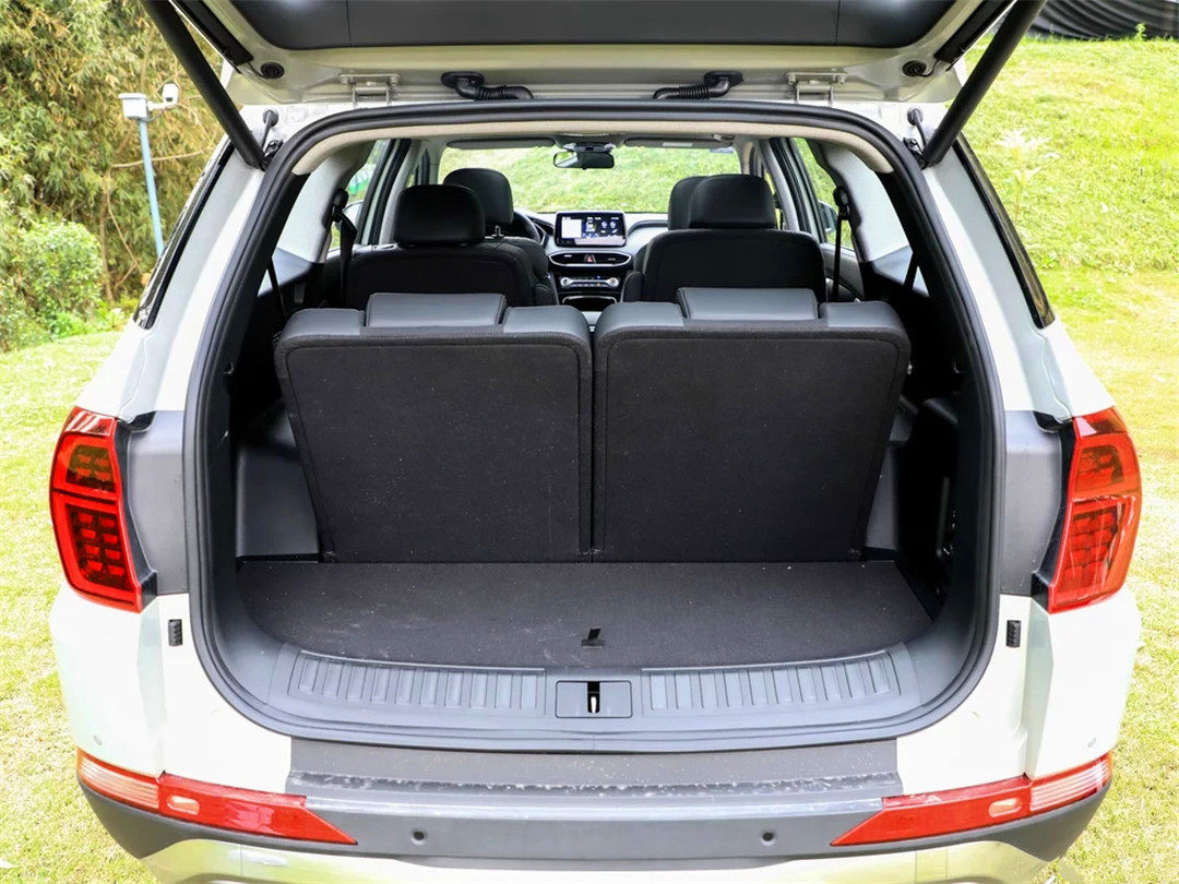 这个尺寸的中型SUV,第三排座椅收起时的后备箱容积和深度都毋庸置疑,所以我们更要看下三排座椅都打开时的表现,毫无疑问,胜达依旧取胜。