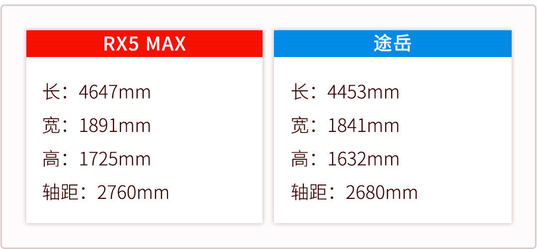 我们最终能在客观数据上找出原因,荣威RX5 MAX的各项外观数据都要比途岳大一圈,这也是多数自主品牌车型与同价位合资品牌车型相比的优势所在,花同样的钱,你能买到尺寸更大的自主车。